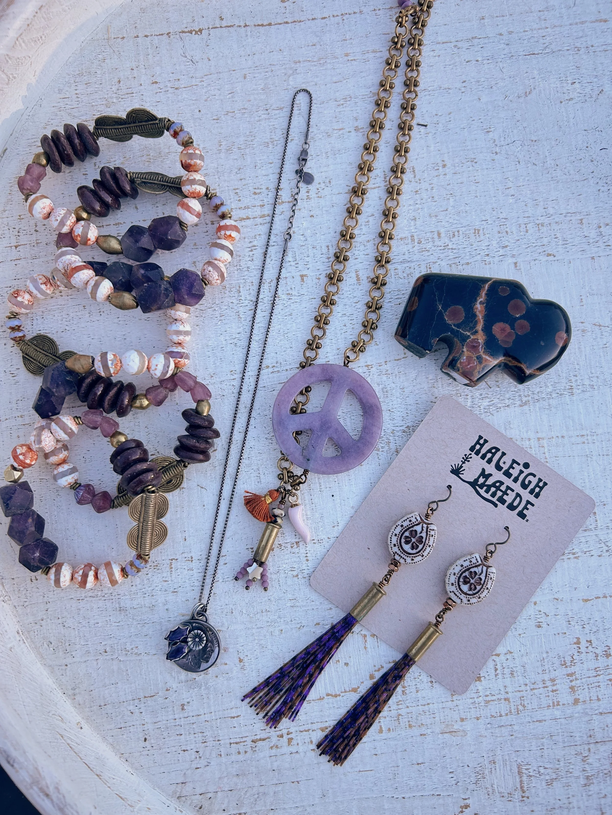 Store Categories: All Stickers Gem Show Finds Bracelets Necklaces Rings Bolos Earrings Brass Sterling Silver All | Stickers | Gem Show Finds | Bracelets | Necklaces | Rings | Bolos | Earrings | Brass | Sterling Silver | Sticker - Doin' Hot Girl Shit $4.00 'The Echo' Nepali Silver + Amethyst Necklace $98.00 'The Frankie' Beaded Bracelet $40.00 Sold Out 'The Peacemaker' Necklace - Purple $58.00 Sticker - You've Got What It Takes (Clear) $4.00 'Wild Mabel' Sterling & Brass Moth Earrings $69.00 'The Peacemaker' Necklace $58.00 Sold Out 'The Rainey' Hoop Earrings $32.00 'The Amarillo' Mixed Metal Earrings $32.00 ‘The Ellen’ Jade Fish Earrings $44.00 ‘The Amy’ Beaded Bracelet $34.00 Sold Out ‘The Bianca’ Jade Fish Earrings $44.00 ‘Also That Summer’ Ocean Jasper + Sterling Silver Ring - Adjustable Sizing $185.00 ‘The Amarillo’ Mixed Metal Earrings $32.00 ‘The Wilson’ Mixed Metal Earrings $50.00 Sold Out ‘The Carly’ Mixed Metal + Moonstone Earrings $34.00 Sold Out ‘The Krista’ Mixed Metal Earrings $34.00 Vintage Utility Pocket Knife Necklace $60.00 ‘The Clover’ Fringe Earrings $36.00 Sold Out ‘The Swamp’ Beaded Bracelet $36.00 ‘Into the Pinestone’ Beaded Bracelet $32.00 Sold Out ‘The Daily’ Sterling Bloom Ring $40.00 Sticker - Wild, Weird, & Wonderful $4.00 'The Marni' Double Wrap Heishi Bracelet $40.00 'The Penelope' Peace Charm Beaded Bracelet $40.00 Nepali Silver + Polished Conch Shell Heart Ring - Adjustable $58.00 Sticker - What's The Best That Could Happen? $4.00 'The Mariana' Calico Scallop Shell Necklace $32.00 'The Marla' Natural Shell + Brass Earrings Sale Price: $30.00 Original Price: $40.00 Sale Nepali Silver + Fossilized Coral Flaming Heart Ring - Adjustable $70.00 Nepali Silver + Tigers Eye Longhorn Ring $68.00 Sold Out 'Fawning Over Flora' Sterling Silver + Turquoise Earrings $118.00 Sold Out 'The Aster' Ring - Mixed Metal Edition $88.00 ‘The Lore’ Earrings $44.00 Sold Out 'Feathered Indian' Buffalo Nickel Necklace - Amethyst $129.00 ‘The Nomad’ Beaded Bracelet $44.00 Haleigh Maede Gift Card (Digital) from $25.00 'Also Camila' Beaded Bracelet $40.00 Sold Out 'The Agate White' Beaded Bracelet $29.00 Sold Out 'The Isla' Necklace - Clear Gooseberry Sale Price: $34.00 Original Price: $44.00 Sale 'The Sanibel' Turquoise + Sterling Silver Ring $165.00 Sold Out ‘A Dollar for a Sailors Heart’ Fossilized Sand Dollar + Turquoise + Sterling Silver Ring - Adjustable Size $185.00 Sold Out 'Smoke Rings' Ocean Jasper + Sterling Silver Ring - Size 8.25 $145.00 Sold Out 'Spirit in the Sky' Turquoise + Sterling Silver Ring - Adjustable Sizing $175.00 'In Your Love' Turquoise + Sterling Ring - Size 8 Sale Price: $99.00 Original Price: $165.00 Sold Out 'The Astarte' Turquoise Naja Pendant Sale Price: $185.00 Original Price: $285.00 Sale 'Ascent' Jasper + Sterling Bolo Sale Price: $138.00 Original Price: $158.00 Sale 'Fawning Over Flora' Brass and Sterling Earrings $65.00 Sold Out 'That Summer' Ocean Jasper + Sterling Silver Ring - Size 6.75 - 7ish Sale Price: $125.00 Original Price: $185.00 Sale ‘The Lanky’ Turquoise & Antler Pendant $128.00 Sold Out 'Howdy Honey' Sterling + Citrine Antler Pendant $148.00 Sold Out 'Me and the Jackalope' Copper and Sterling Bolo Tie $345.00 Sold Out